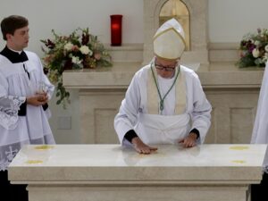 The Rite of Dedication of a Church is one of the Church’s most solemn liturgical acts and follows an ancient custom. It is the means of consecrating a church exclusively to God, making it a fitting place of prayer, praise, the celebration of the sacraments, and the reservation of the Eucharist. The church building is a visible sign of the Church, that is, the People of God who are the Temple of God made of living stones, a spiritual house built upon Christ, the cornerstone (see 1 Peter 2:4-6). Central to this rite is the consecration of the altar, which stands as a sign of Christ, who is the priest, the victim, and the altar of His own sacrifice.